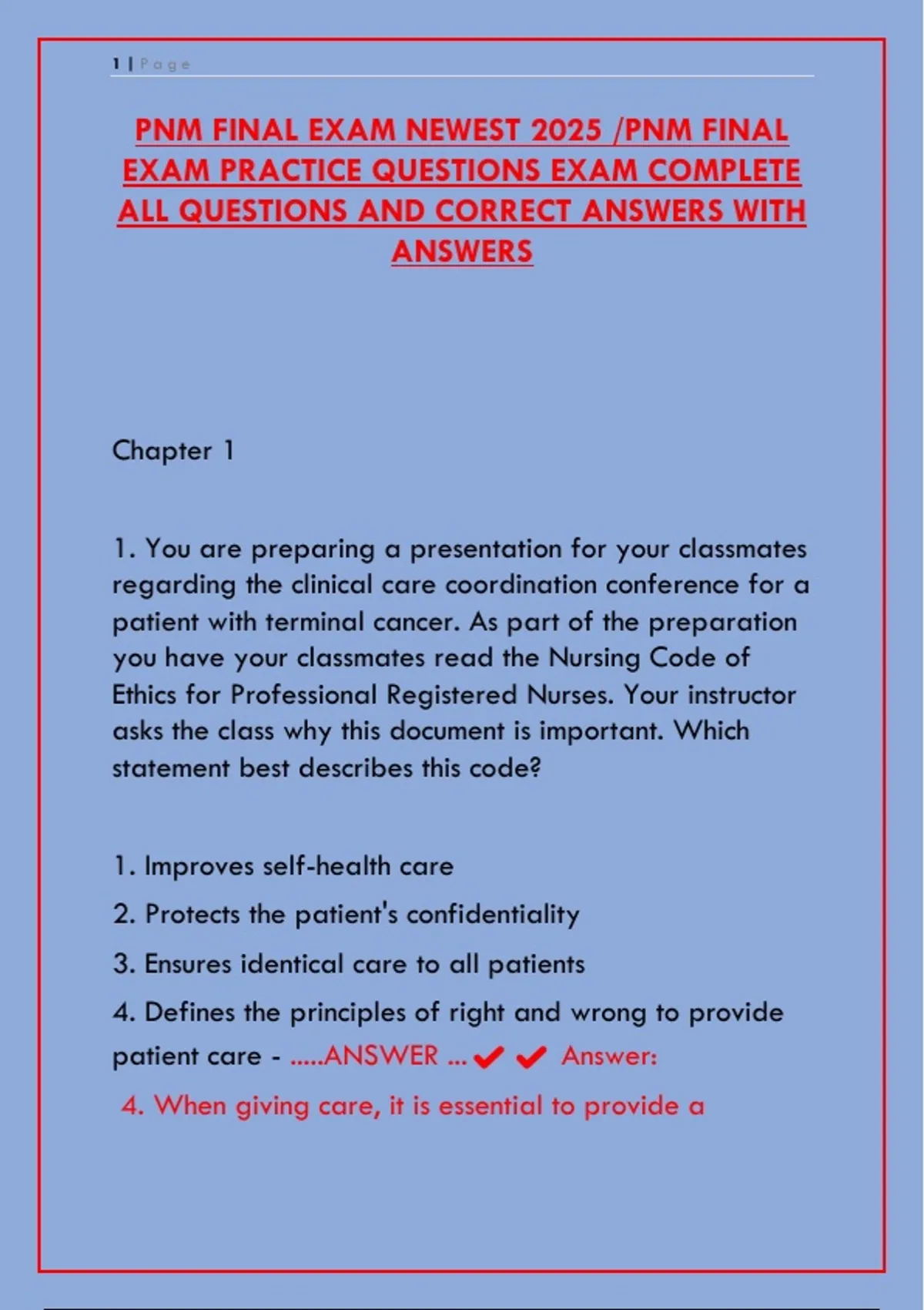 .....ANSWER ...✔✔ Answer: 1. The nurse is