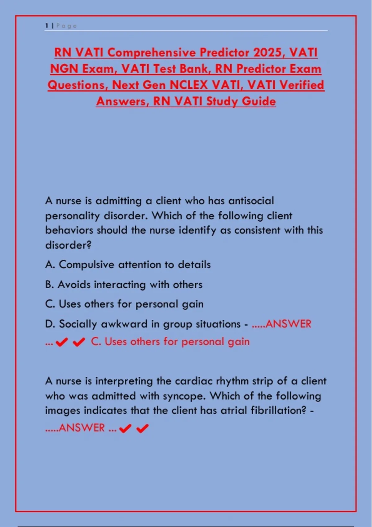 Questions, Next Gen NCLEX VATI, VATI Verified