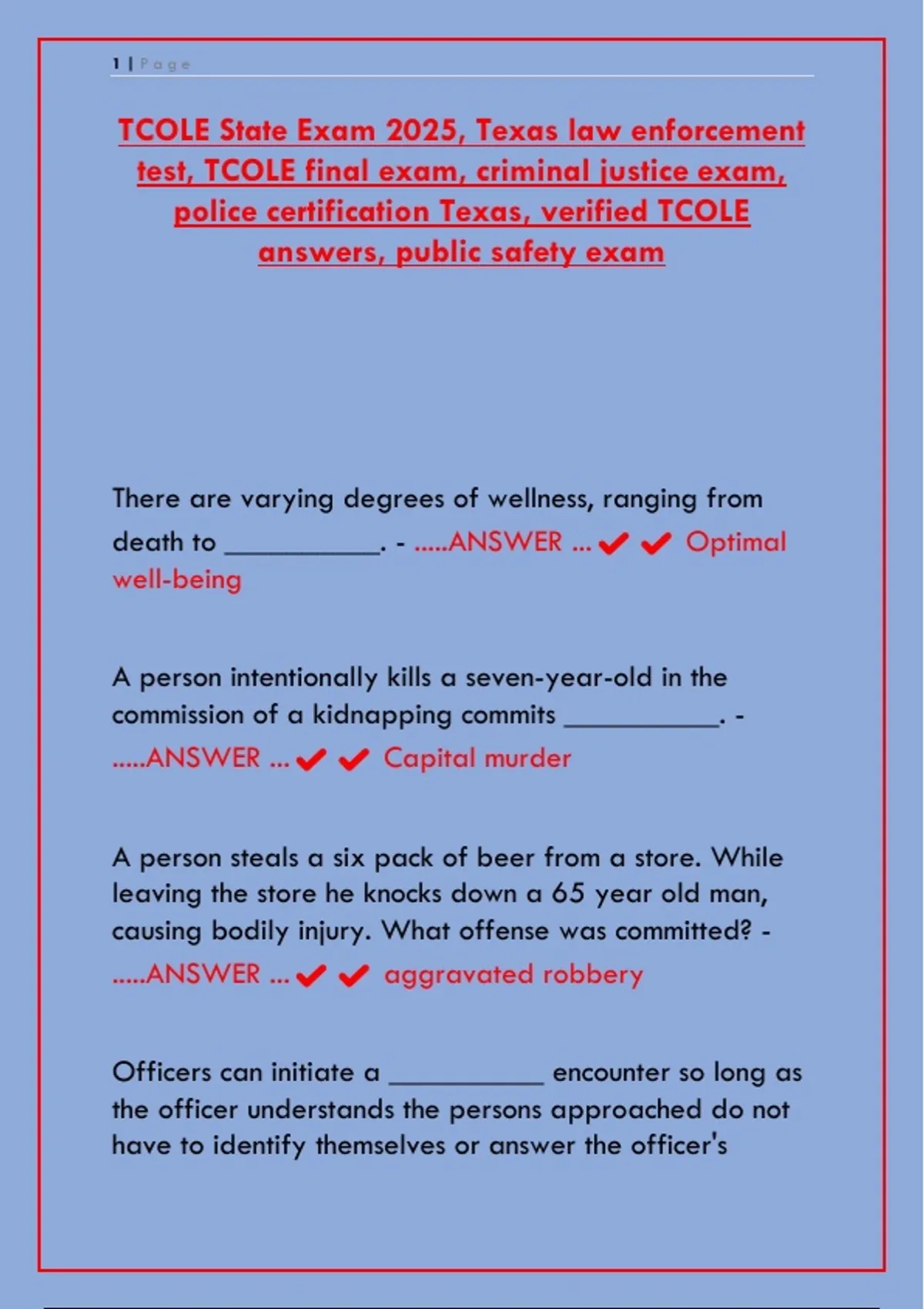 TCOLE State Exam 2025, Texas law enforcement