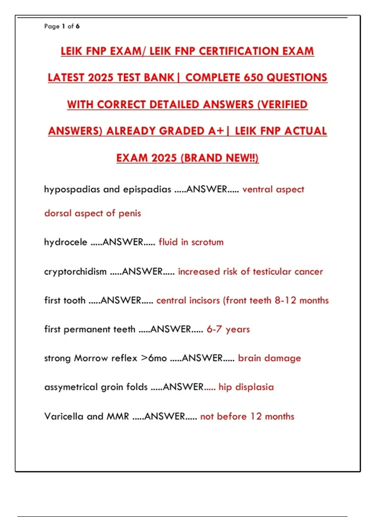 ANSWERS) ALREADY GRADED A+| LEIK FNP ACTUAL