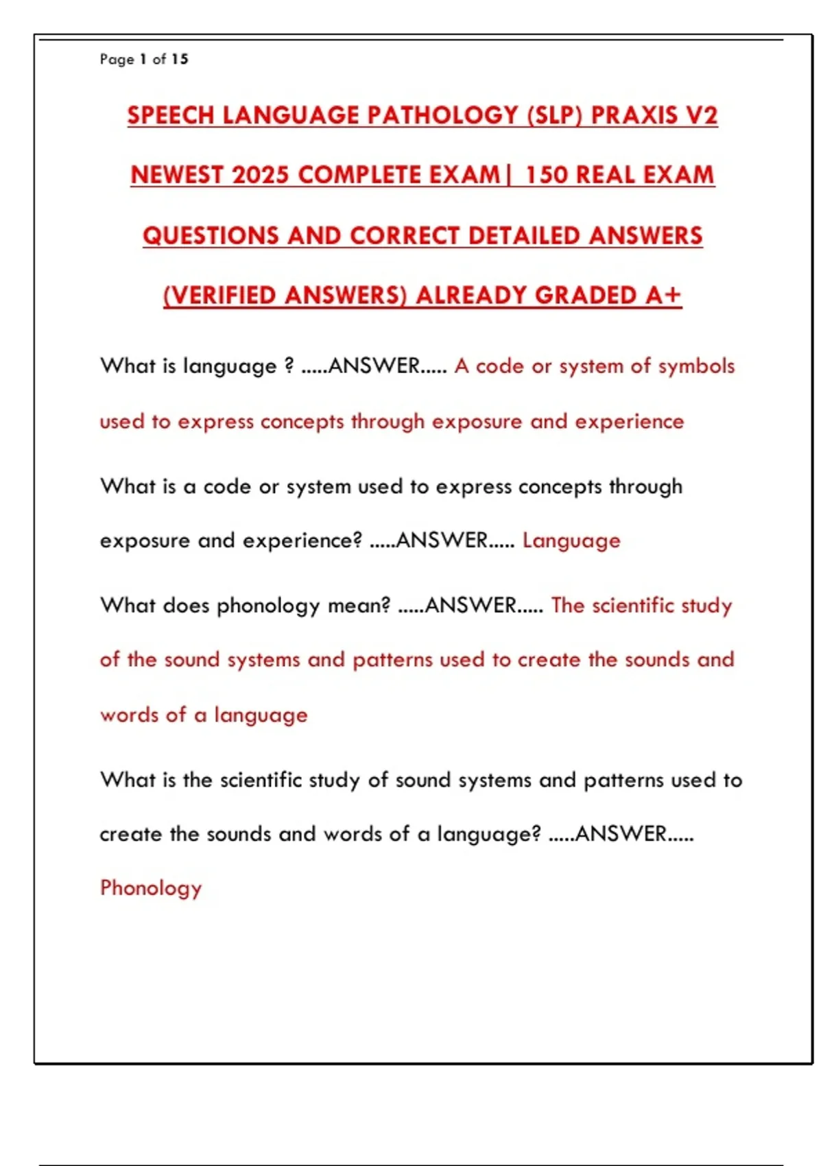 SPEECH LANGUAGE PATHOLOGY (SLP) PRAXIS V2