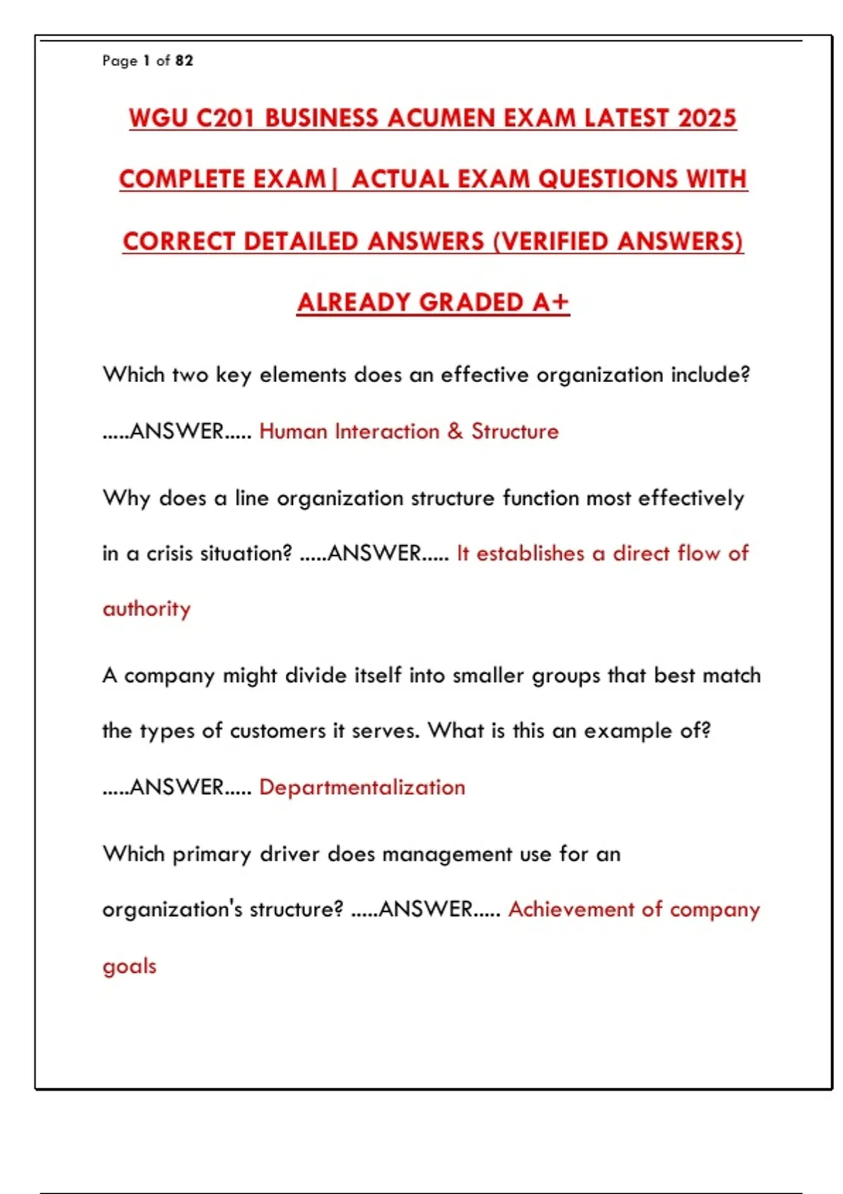 WGU C201 BUSINESS ACUMEN EXAM LATEST 2025