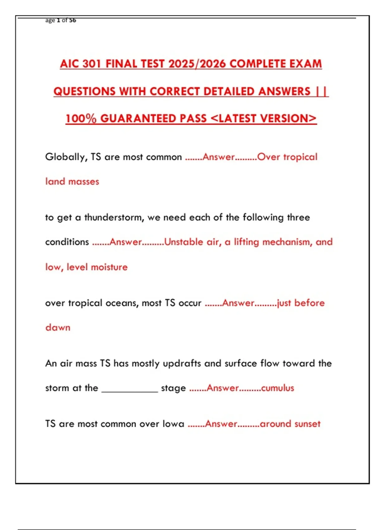 AIC 301 FINAL TEST 2025/2026 COMPLETE EXAM