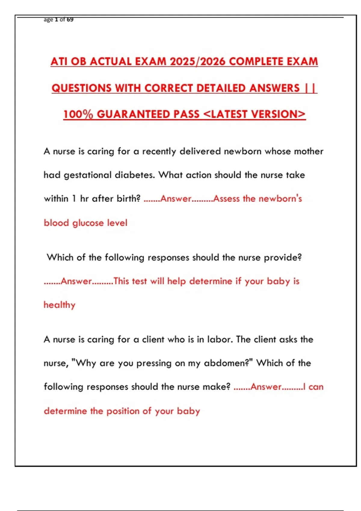Get ready for the ATI Obstetrics (OB) proctored exam. This actual exam PDF includes real practice questions, detailed rationales for answers, and key topics on maternal-newborn nursing to help you pass.