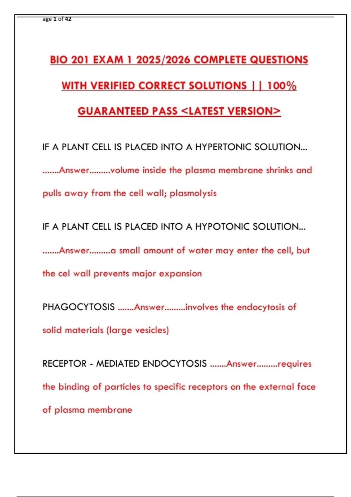 BIO 201 EXAM 1 2025/2026 COMPLETE QUESTIONS