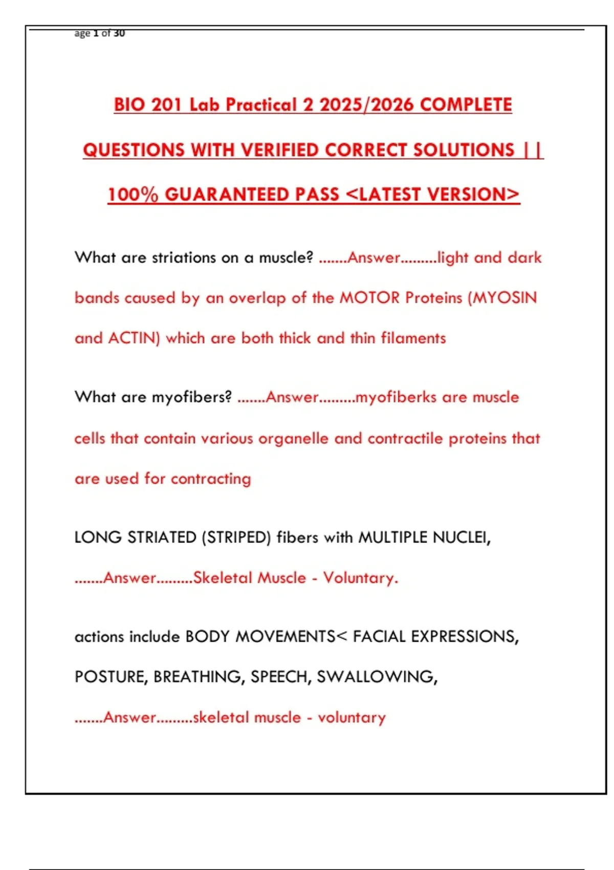 BIO 201 Lab Practical 2 2025/2026 COMPLETE