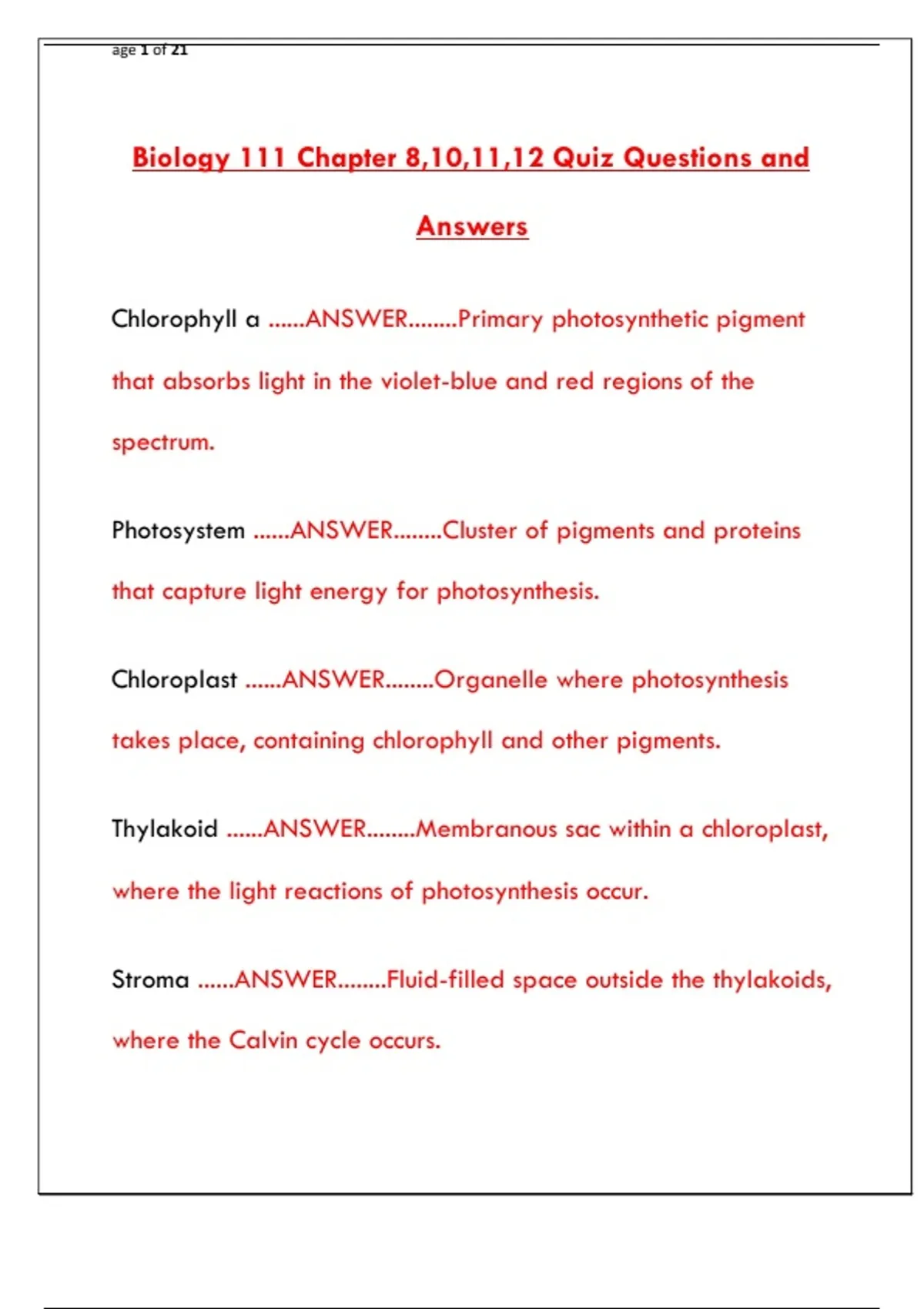 Biology 111 Chapter 8,10,11,12 Quiz Questions and