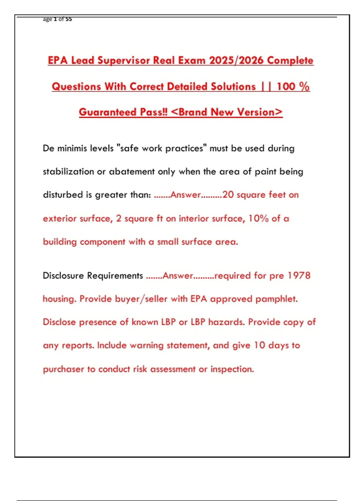 EPA Lead Supervisor Real Exam 2025/2026 Complete