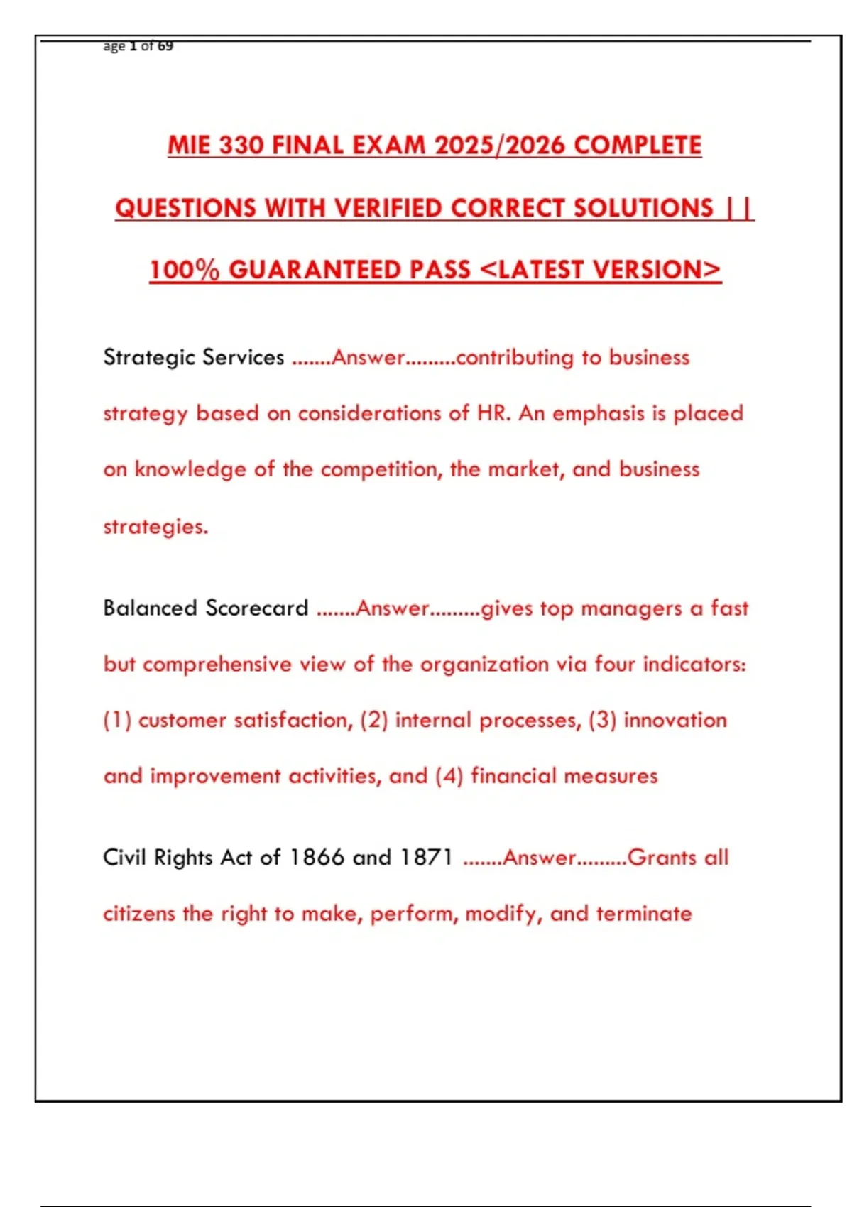MIE 330 FINAL EXAM 2025/2026 COMPLETE