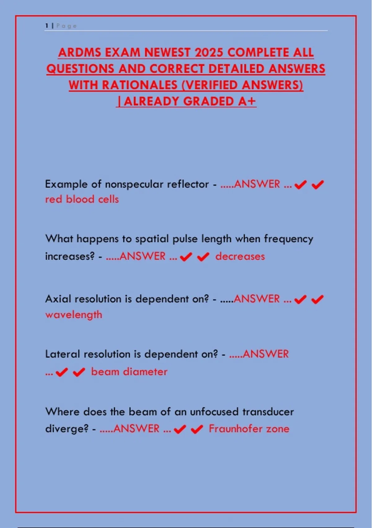 ARDMS EXAM NEWEST 2025 COMPLETE ALL