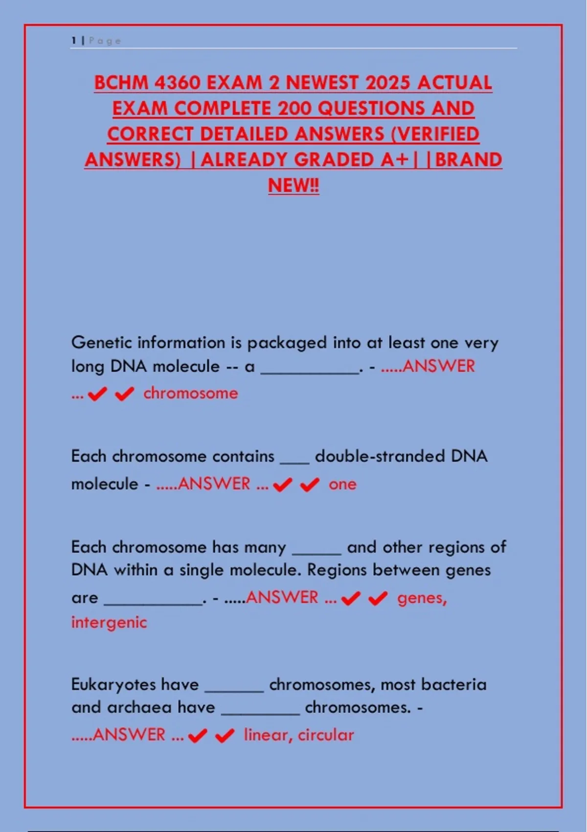 BCHM 4360 Exam 2 2025 Actual Exam: 200 Complete Questions and Verified Answers