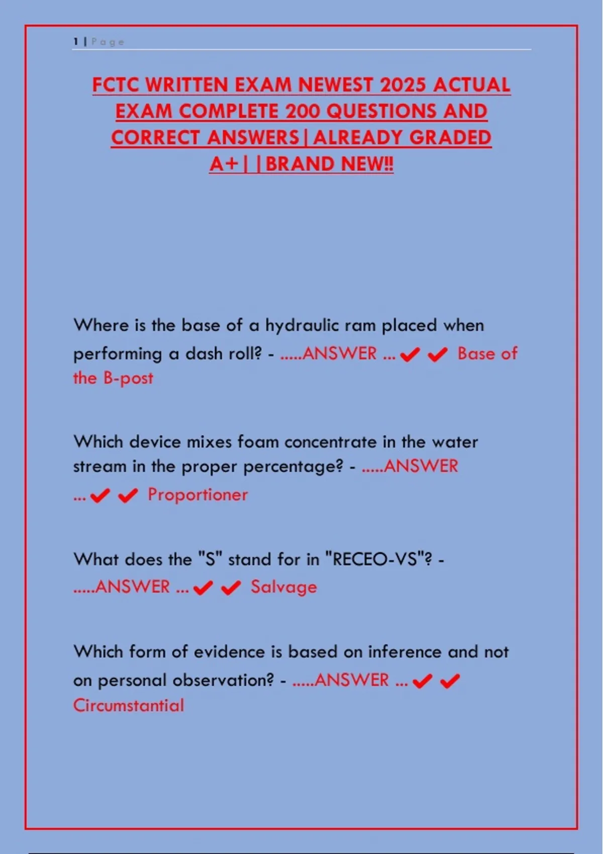 FCTC WRITTEN EXAM NEWEST 2025 ACTUAL