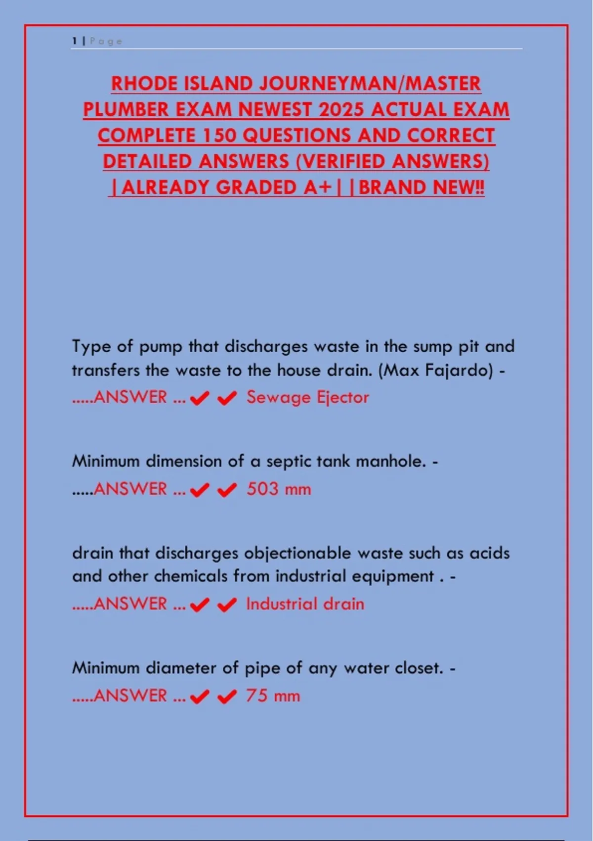 PLUMBER EXAM NEWEST 2025 ACTUAL EXAM
