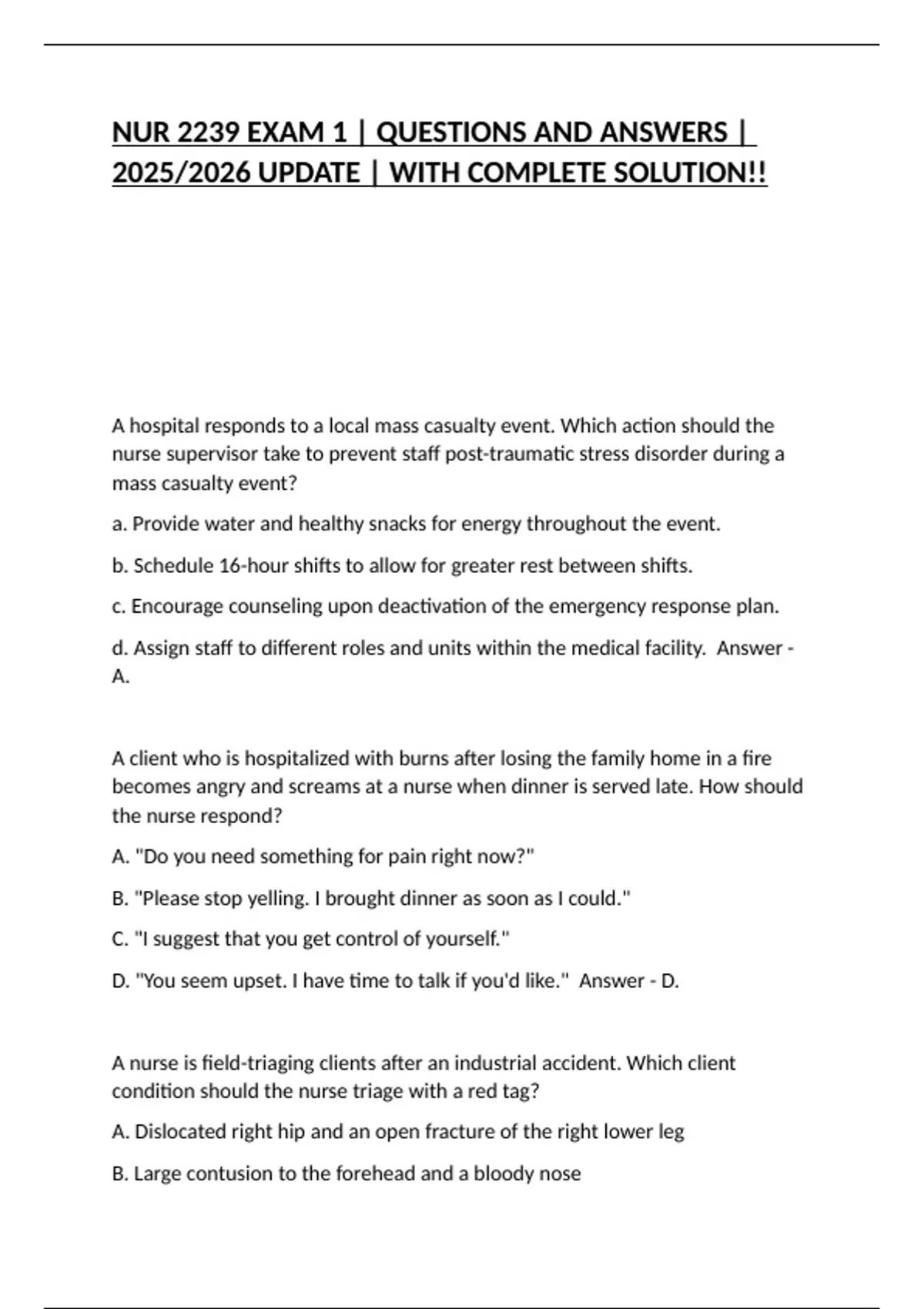NUR 2239 EXAM 1 | QUESTIONS AND ANSWERS |