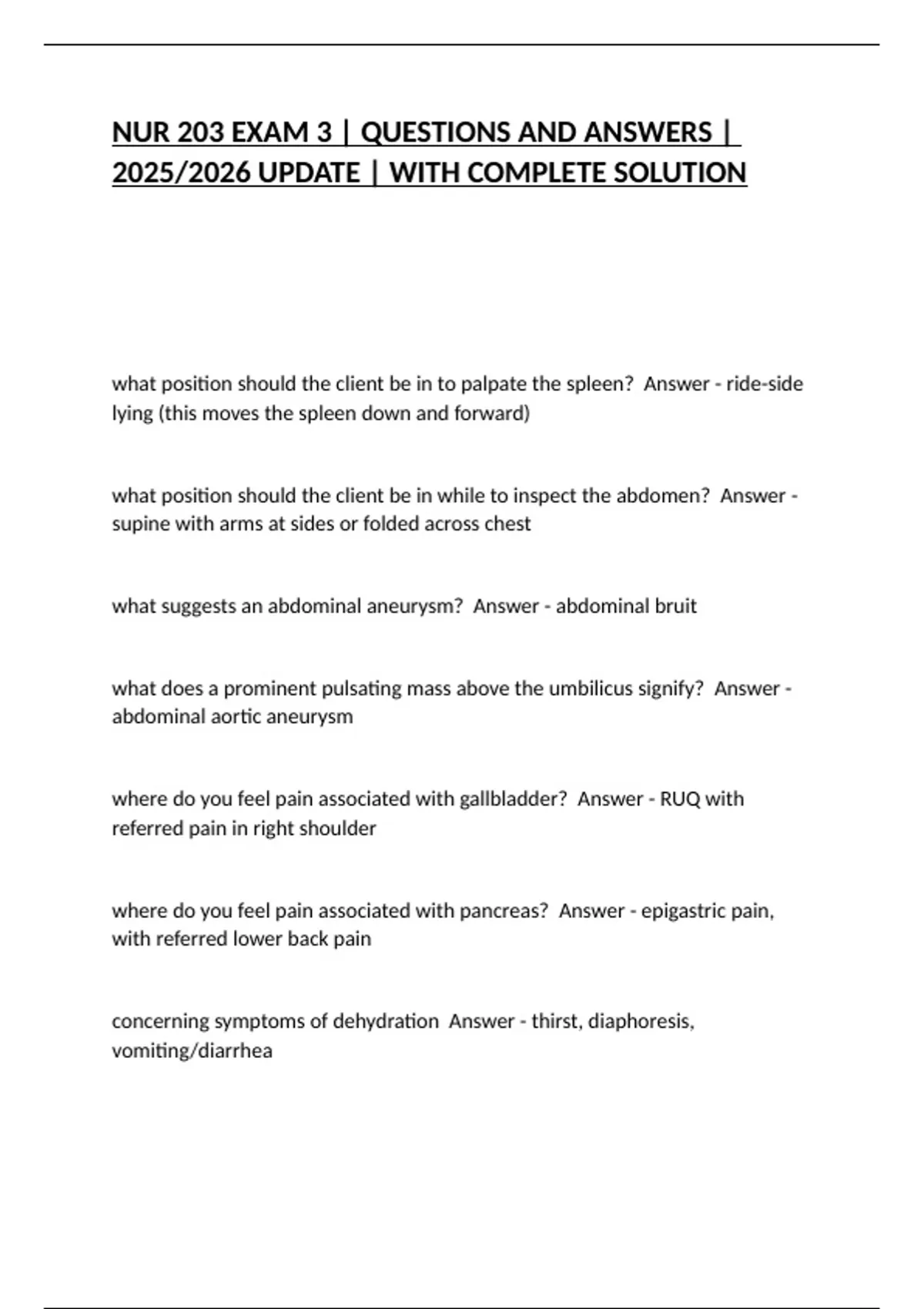 NUR 203 EXAM 3 | QUESTIONS AND ANSWERS |