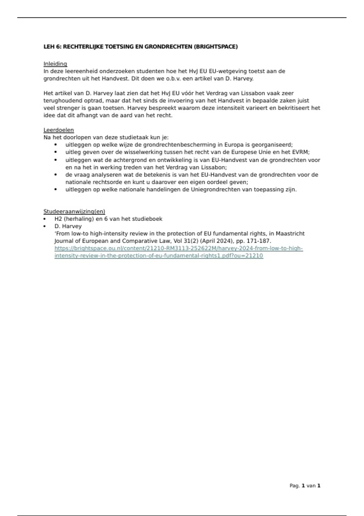 LEH 6: RECHTERLIJKE TOETSING EN GRONDRECHTEN (BRIGHTSPACE)