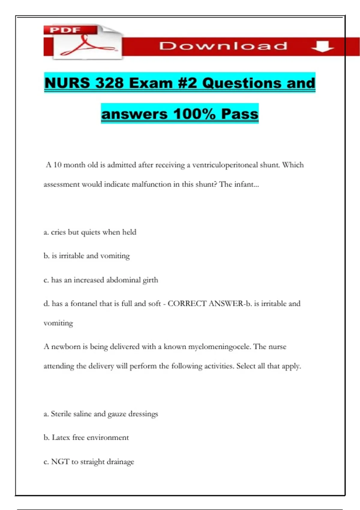 NURS 328 Exam #2 Questions and
