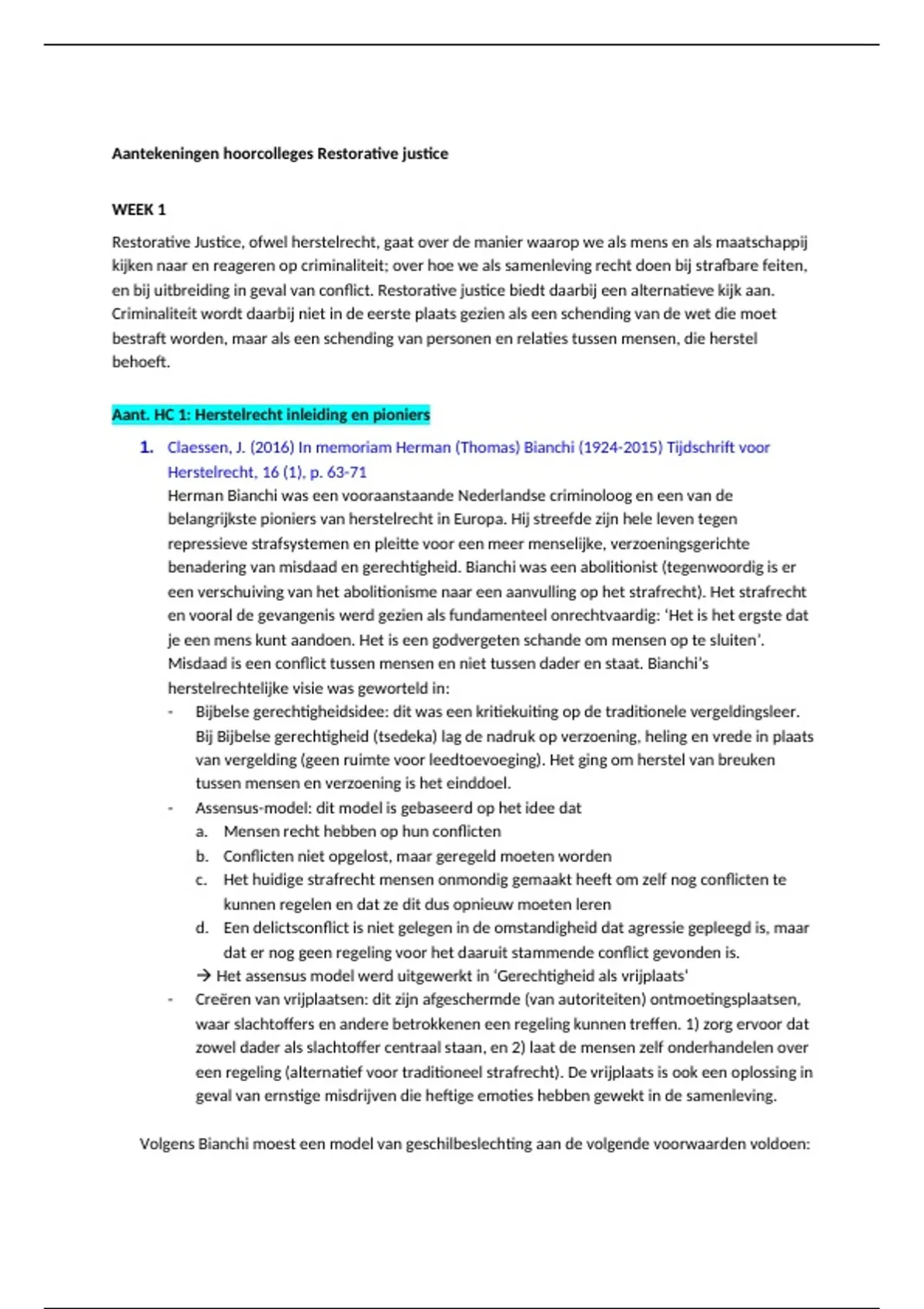 Aant. HC 1: Herstelrecht inleiding en pioniers