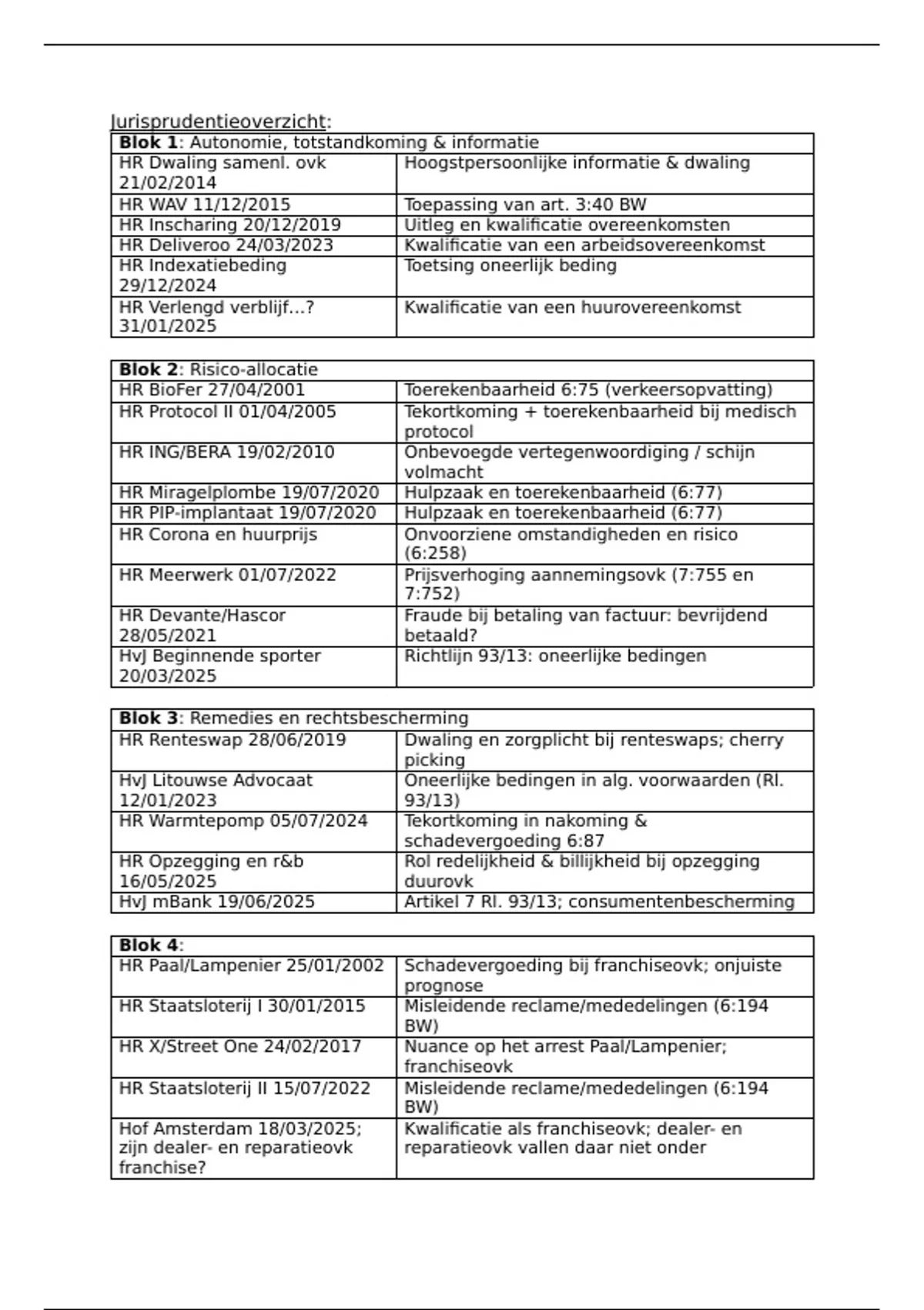 Jurisprudentieoverzicht: