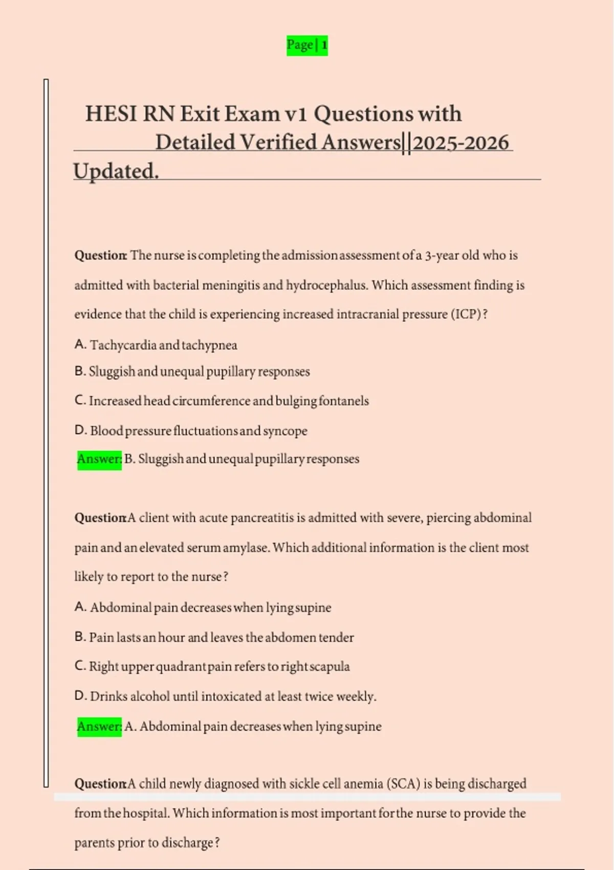 HESI RN Exit Exam v1 Questions with Detailed Verified Answers|| Updated.