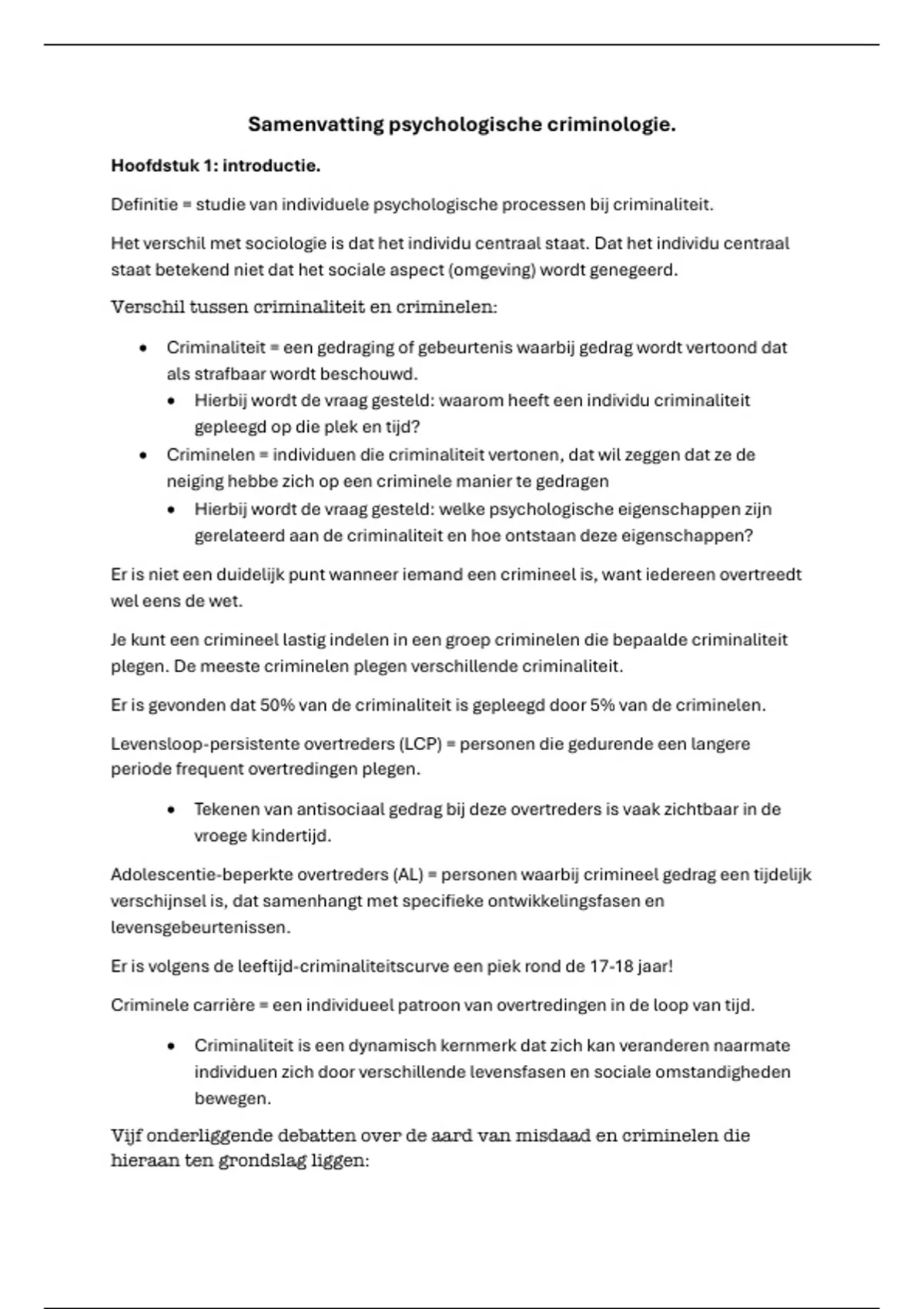 Samenvatting psychologische criminologie.