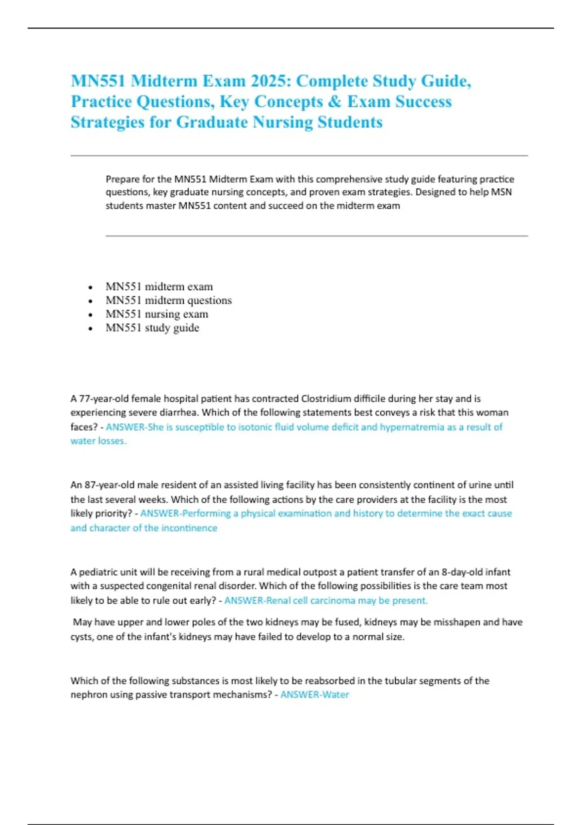 Prepare for the MN551 Midterm Exam with this comprehensive study guide featuring practice