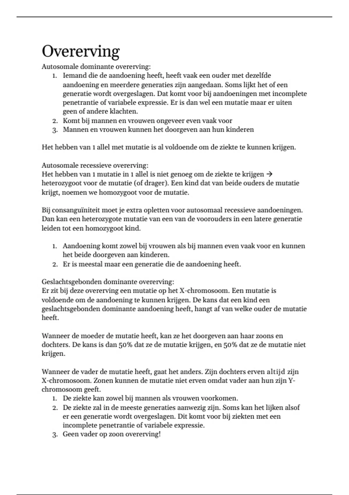 Samenvatting van blok MAA overerving binnen MGZ q1