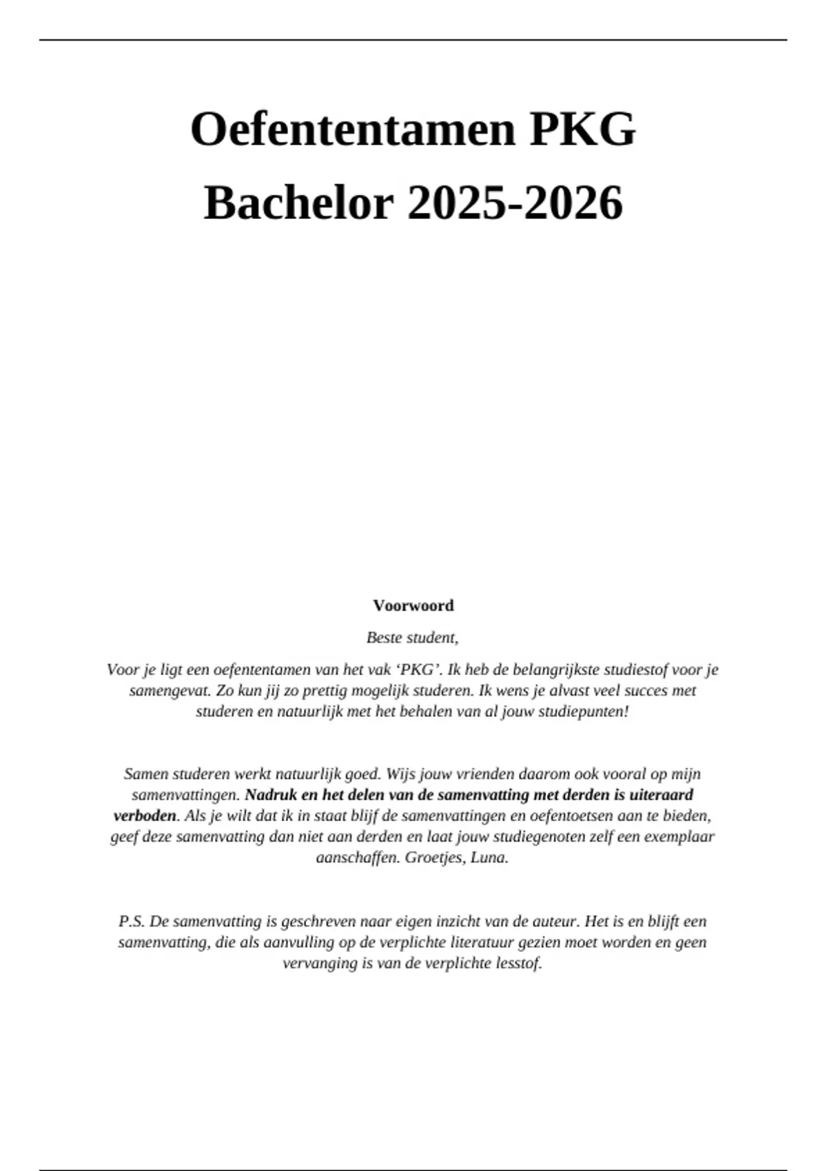 Voor je ligt een oefententamen van het vak ‘PKG’. Ik heb de belangrijkste studiestof voor je