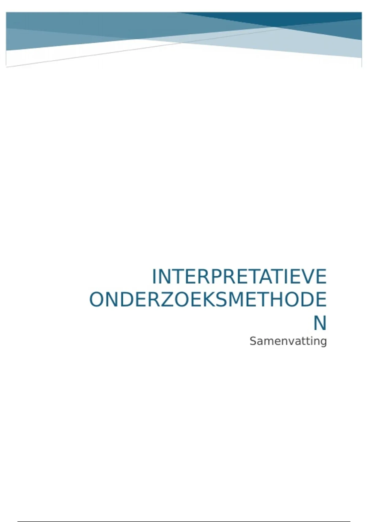 Samenvatting - Interpretatieve onderzoeksmethoden
