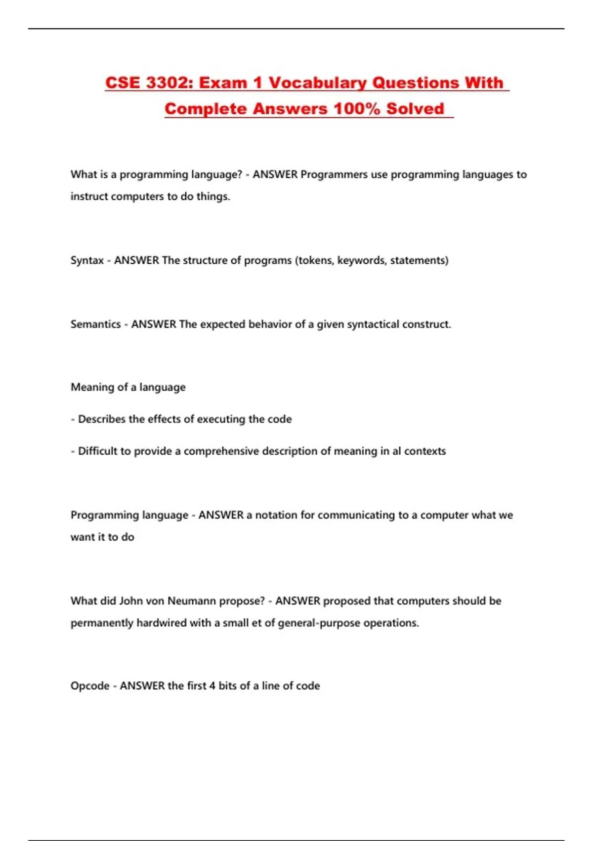 CSE 3302: Exam 1 Vocabulary Questions With