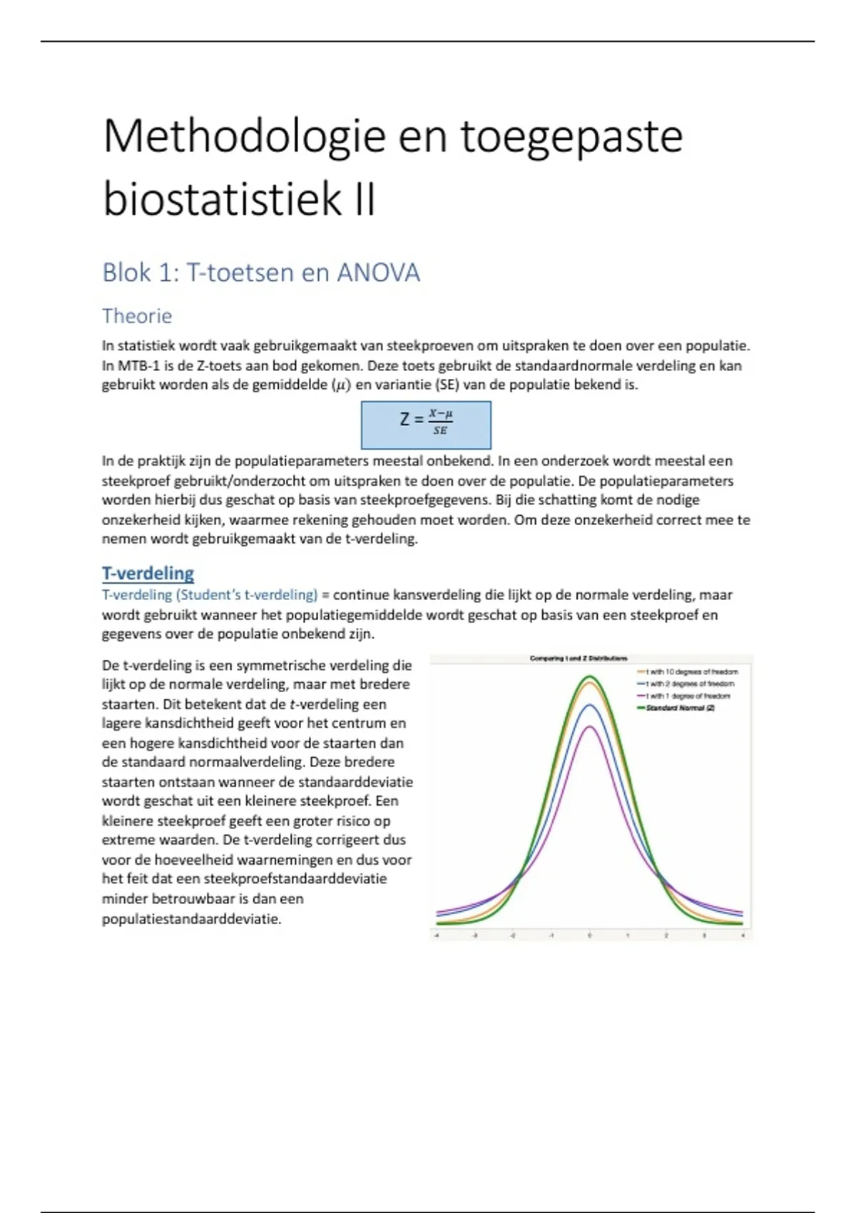 In MTB-1 is de Z-toets aan bod gekomen. Deze toets gebruikt de standaardnormale verdeling en kan