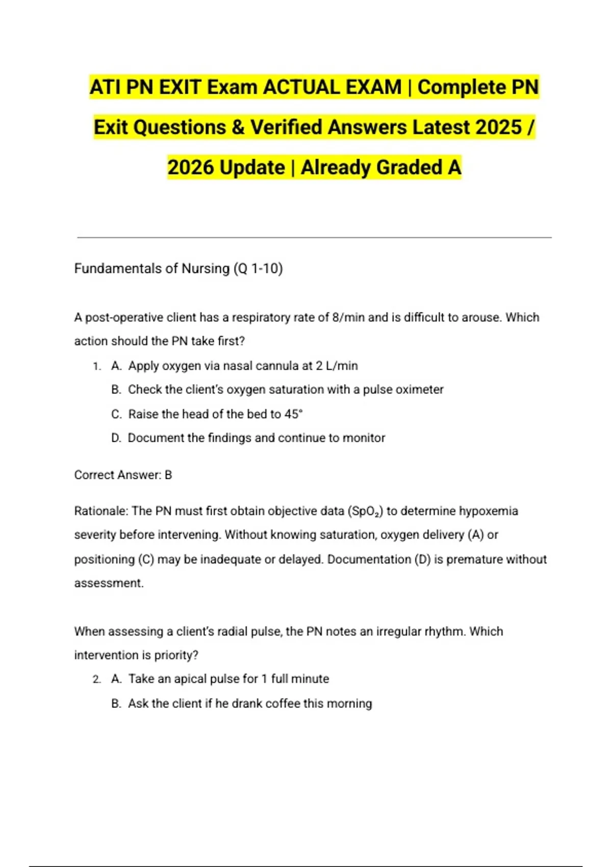 2.​ A. Take an apical pulse for 1 full minute​