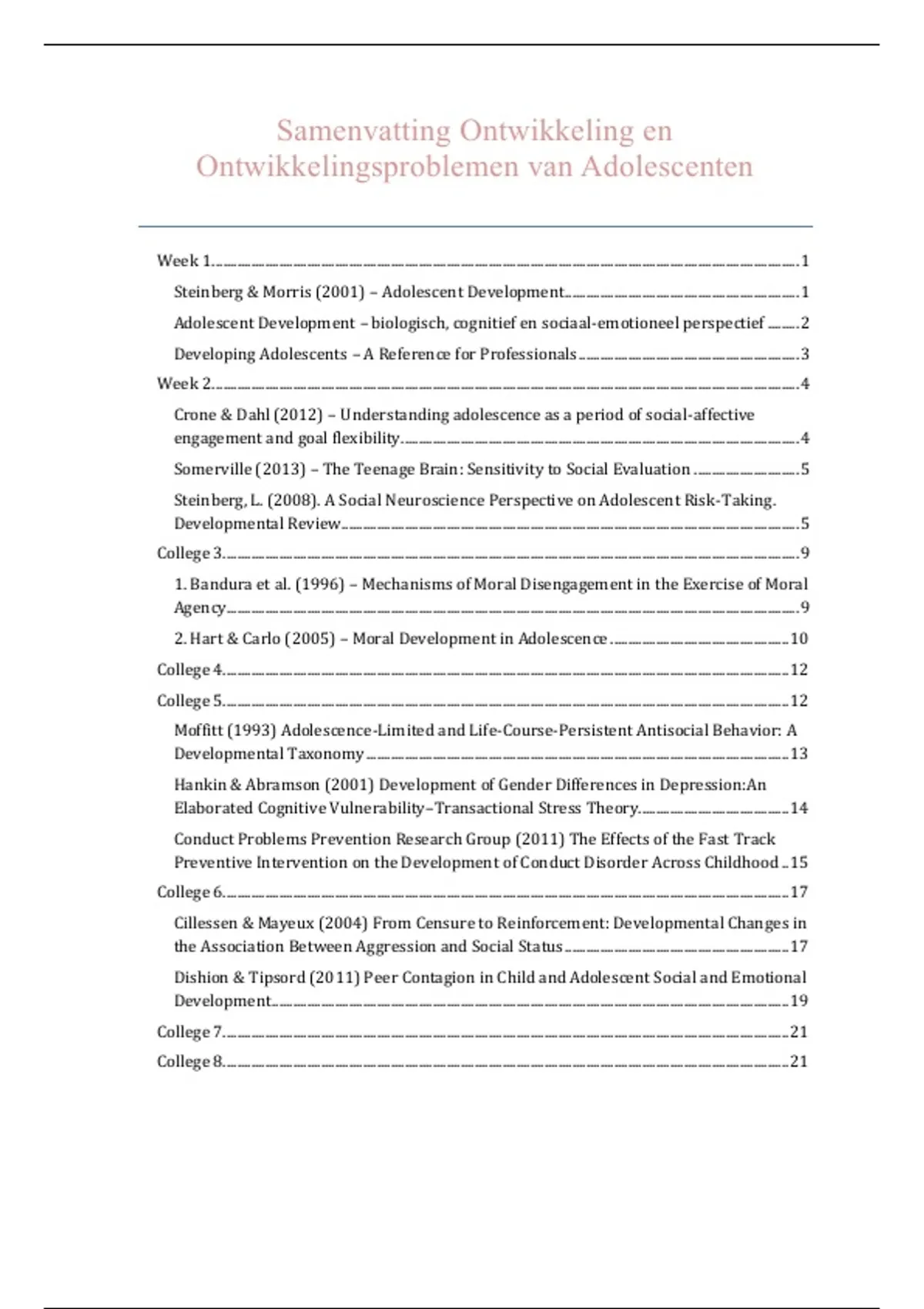 Steinberg & Morris (2001) – Adolescent Development ................................................................... 1