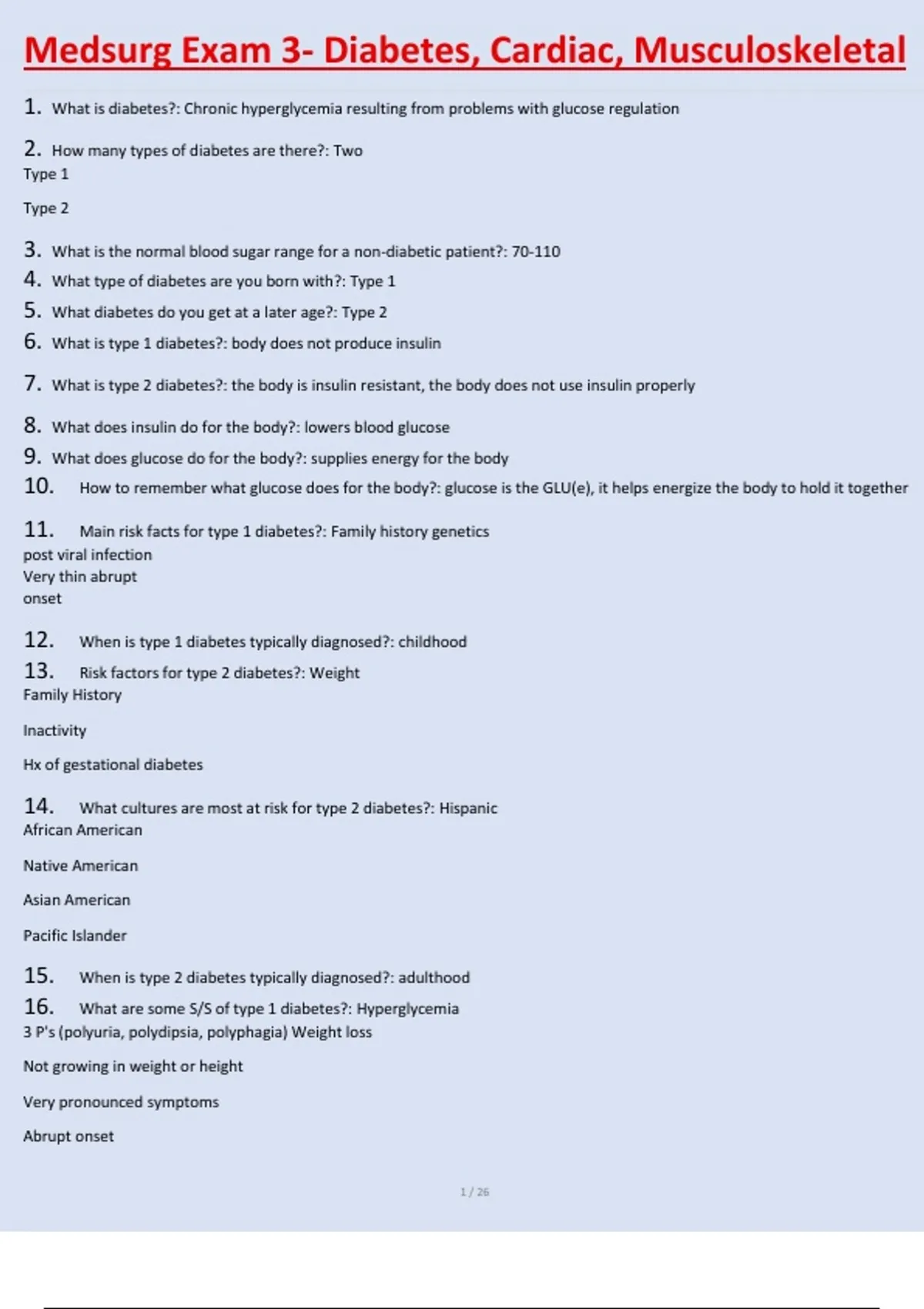 Medsurg Exam 3- Diabetes, Cardiac, Musculoskeletal
