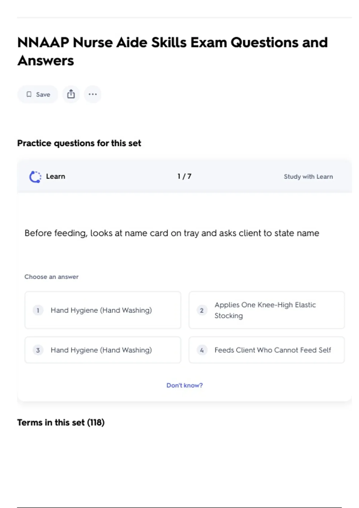 NNAAP Nurse Aide Skills Exam Questions and Answers