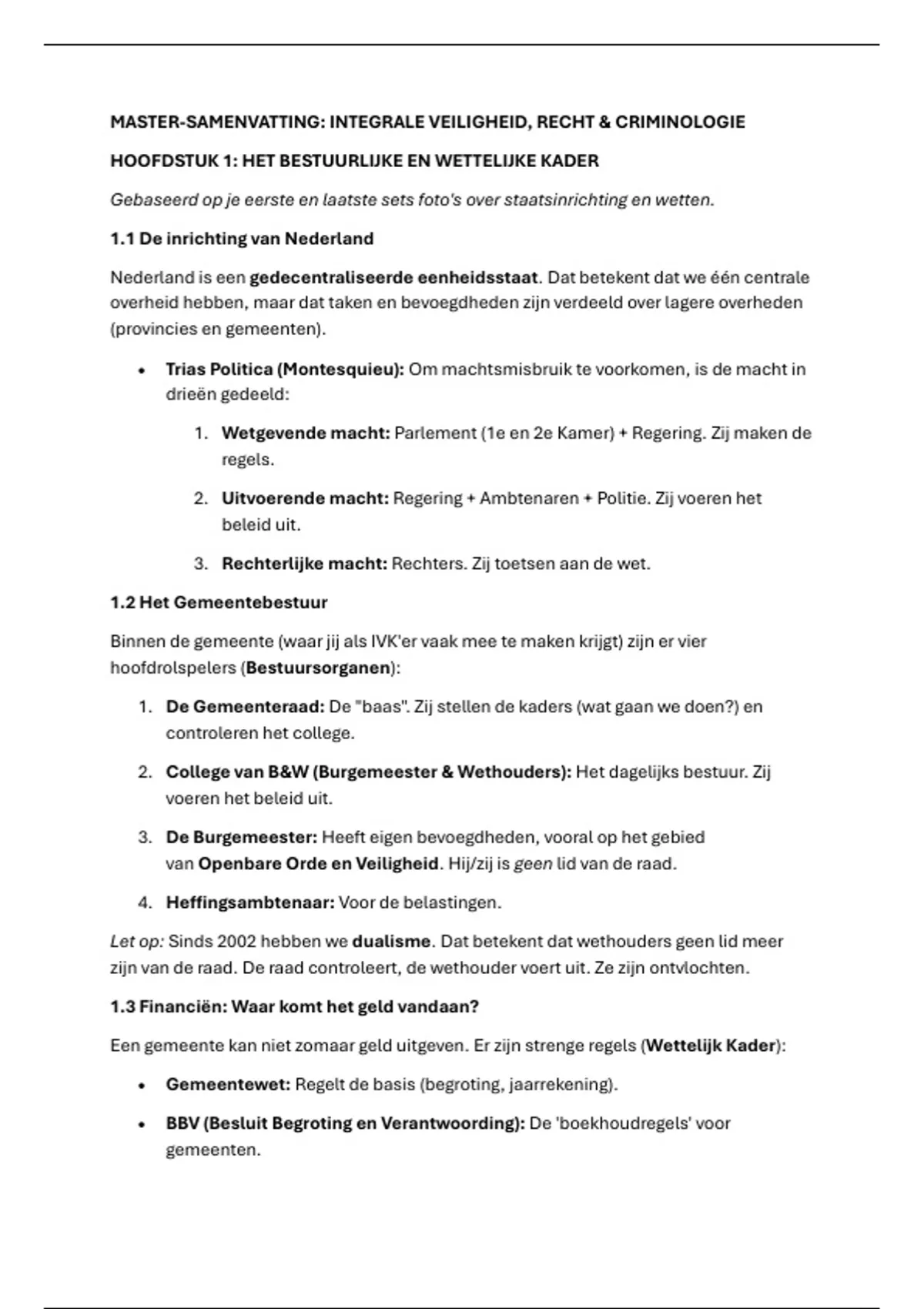 • Trias Politica (Montesquieu): Om machtsmisbruik te voorkomen, is de macht in