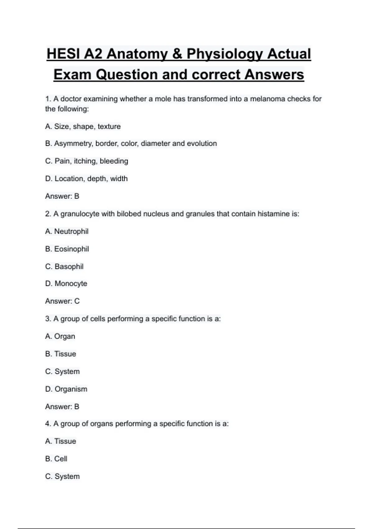 HESI A2 Anatomy & Physiology Actual Exam Question and correct Answers (100% VERIFIED)| 2025/2026