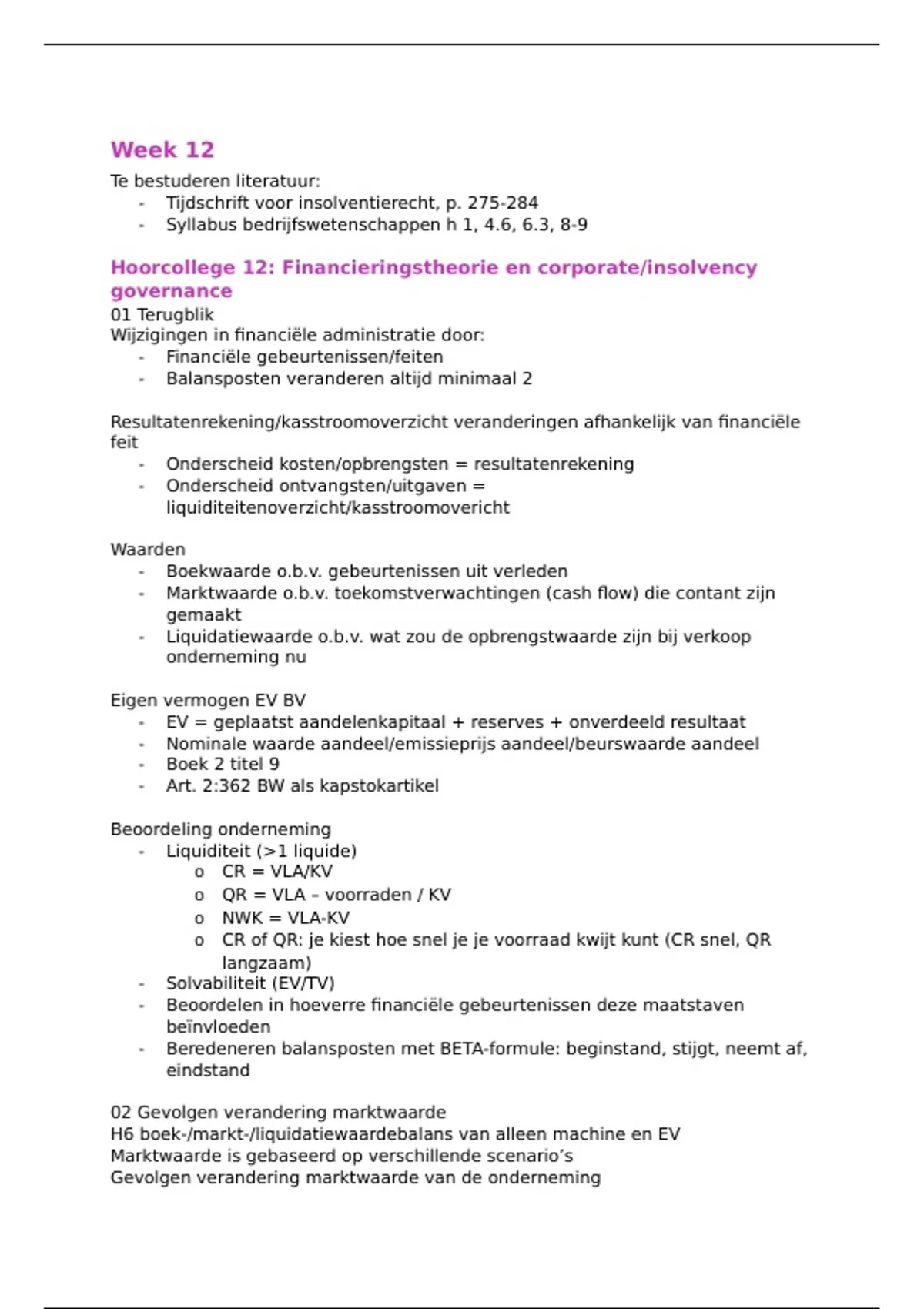 Hoorcollege 12: Financieringstheorie en corporate/insolvency