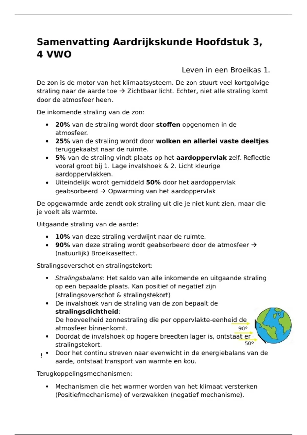Dit document is een overzichtelijke samenvatting van hoofdstuk 3 uit het boek De wereld van Aardrijkskunde voor havo/vwo 4. De samenvatting bevat uitleg van kernbegrippen en geografische processen, ondersteund met duidelijke tekst en overzichtelijke tekeningen en belangrijke bronnen uit het boek, waardoor de stof makkelijker te begrijpen en te leren is.