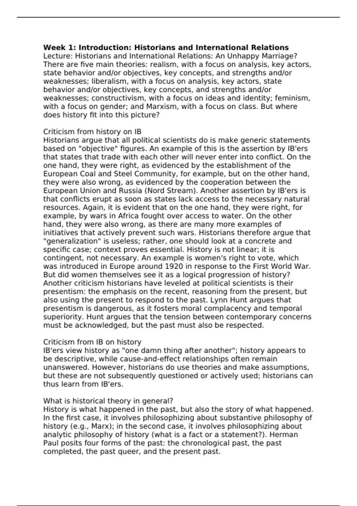 Criticism from history on IB