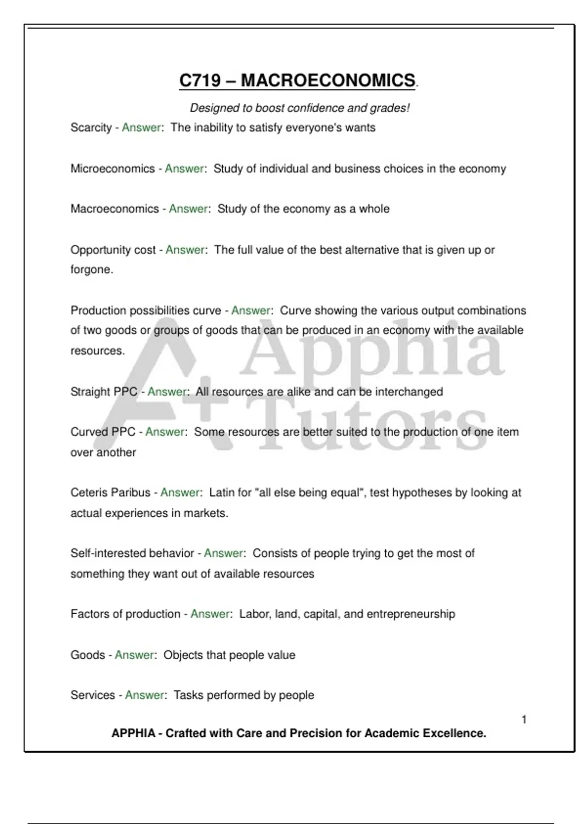 C719 – MACROECONOMICS. Designed to boost confidence and grades!