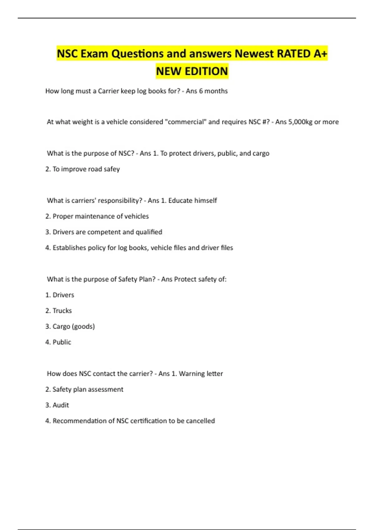 What is the purpose of NSC? - Ans 1. To protect drivers, public, and cargo