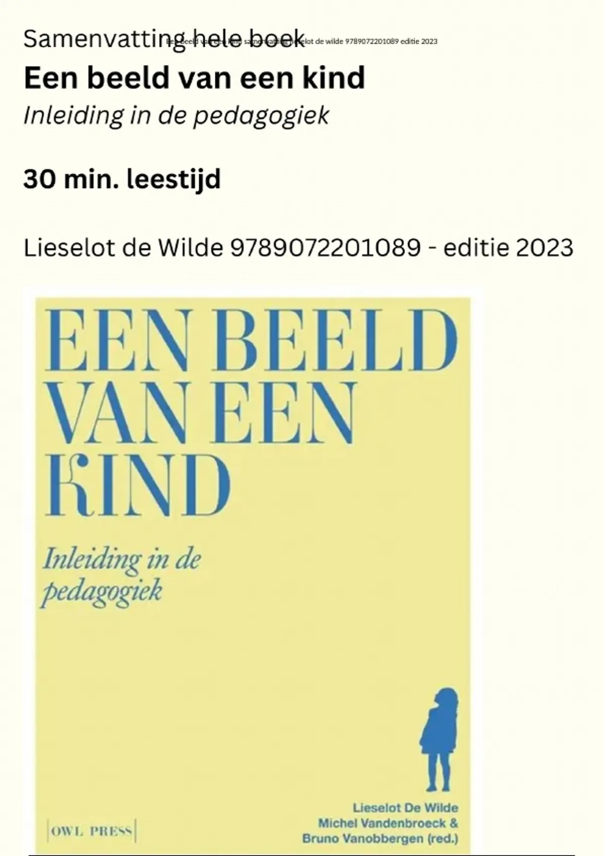 , Een beeld van een kind samenvatting lieselot de wilde 9789072201089 editie 2023