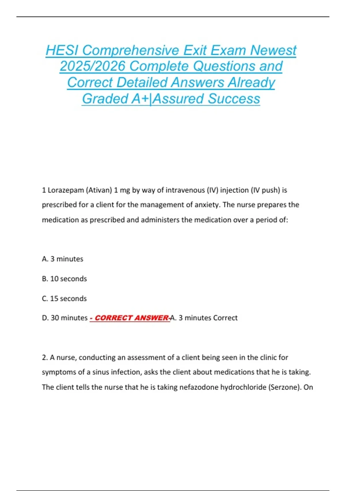 HESI Comprehensive Exit Exam Newest 2025/2026 Complete Questions and Correct Detailed Answers Already Graded A+|Assured Success