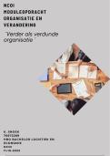 Uitgewerkte moduleopdracht Organisatie en verandering (HBO HRM - NCOI). Bevat een volledige organisatiediagnose (7S-model), IST- en SOLL-analyse, veranderaanpak met Lewin, Kotter, OCAI en De Caluwé, SMART-veranderdoel en (geanonimiseerde) bijlagen. Geschikt als voorbeeld en leidraad.