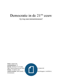 Dit is het eindwerkstuk van het OZP staatsrecht van 2015. Het onderwerp is internetdemocratie. Bijzondere aandacht wordt besteed aan stemmen via internet en de problemen die dat kan opleveren (stemgeheim en stemvrijheid). Dit probleem wordt in rechtsvergelijkend perspectief geplaatst. Voor meer concrete informatie kun je een berichtje sturen.