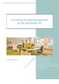 "U laat alle gevraagde onderdelen met ruim voldoende diepgang aan de orde komen. De gebruikte modellen past u correct toe. De verkregen informatie verwerkt u op navolgbare wijze uit in uw moduleopdracht. U heeft een goede moduleopdracht geschreven. Proficiat, u bent geslaagd. Veel succes met uw studie." Beoordeling door examinator ook onder voorwoord. In deze moduleopdracht is een veranderaanpak beschreven voor de invoering van procesmanagement in een organisatie.