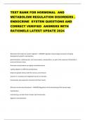 TEST BANK FOR HORMONAL AND METABOLISM REGULATION DISORDERS . ENDOCRINE SYSTEM QUESTIONS AND CORRECT VERIFIED ANSWERS WITH RATIONELS LATEST UPDATE 2024