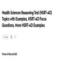 Health Sciences Reasoning Test (HSRT-AD) Topics with Examples Questions with correct answers.