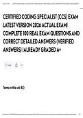 CERTIFIED CODING SPECIALIST (CCS) EXAM LATEST VERSION 2026 ACTUAL EXAM- COMPLETE 100 REAL EXAM QUESTIONS AND CORRECT DETAILED ANSWERS (VERIFIED ANSWERS) -ALREADY GRADED A+